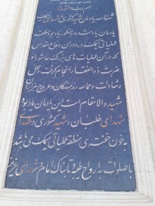 بعد از آن به سمت یادمان شهدای قلاویزان رفتند که در شهر مهران پس از عبور از پل زائر، 4-5 کیلومتر مانده به پاسگاه یک تابلو بزرگ به شکل بارگاه درست کردند که روی آن نوشته:” یادمان شهدای قلاویزان”  که مزار 5 شهید در آن جا قرار داشت. قلاویزان هم نقطه ی صفر مرزی ست که رو به روی آن عراق است. که مراسم  حدود ساعت 7 بعد از ظهرهمین روز در این مکان برگزار شد.  که سخنران آن هم سردار غلامی از دوستان سازمان بسیج بود. که خادمین مراسم از همان ساعت 2 بعد از ظهر در حال آماده سازی و تدارک مراسم بودند. حدود300-400نفر از افراد مختلف شرکت کرده بودند همچین از خود شهر مهران تا قلاویزان که محل برگزاری مراسم بود و حدود10-12 کیلومتر فاصله داشت ماشین هایی جهت انتقال افراد گذاشته بودند.