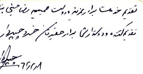 پدر و مادر بزرگوارم اگر پيكرم به دستتان رسيد هركجا كه مايل بوديد دفن كنيد. ولي اگر به خواست و مشيت الهي در جبهههاي نبرد ماند ناراحت نشويد كه آرزوي من بوده و از جسمهاي ما چيزي جز خاك باقي نميماند و روح شهيدان و اولياء و مومنين در پيشگاه ذات اقدس حق بلند و ابدي است.
