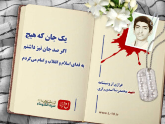 می گویم اگر یک جان که هیچ اگر صد جان نیز داشتم به فدای اسلام و انقلاب و امام میکردم تا بتوانم از درگاه او بر خوان الهی حاضر و از روزی خوان درگاه تو باشم .