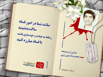 ای دوستانم ای که در مشکلات و مصائب و تنهائی ها یاور من بودید شما در شناخت حق و حقیقت یارم بودید نمیدانم به شما چه بگویم فقط باید گفت که امام و جلهه و دعا و مسجد و بسیج را یاری نمائید سنگرها را حفظ کنید که امری است واجب نباشد که در مشکلات جا خالی کنید و از تصمیم خود برگردید نباشد شما در امور فساد ساکت بنشینید و فقط به عبادت و خودسازی باشید .