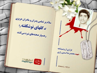 و باسلام بر امت عزیز و شهید پرور ایثارگر و با سلام بر تمامی پدران و مادران عزیزی که فرزندان خویش با این گلهای نوشکفته انقلاب را رهسپار صحنه های نبرد میکنند و سلام به تمامی دوستان و آشنایان عزیزم که .. سلامی گرم به پدر و مادر و برادران گرامیمم :