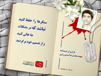 بعد از چهل سال گریه کردن و سینه زدن توی هیات، عمرن که ما بتونیم چنین وصیت نامه ای بنویسیم و چنین دعایی بکنیم! خدایا (به قول این شهید نوجوان عزیز) آخرین کلام ما در این دنیا ،اولین کلام ما در آخرت را نام حسین(ع) قرار بده. آمین