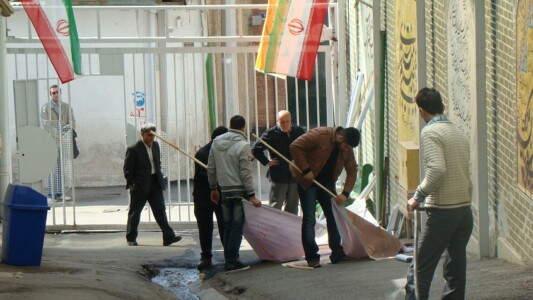 خادمان گردان از صبح در محل حسینیه حضور یافته و مشغول آماده سازی فضا و نصب بنر و پرچم و وسایل پذیرایی از مدعوین گرامی و انجام سایر امور مربوطه شدند.